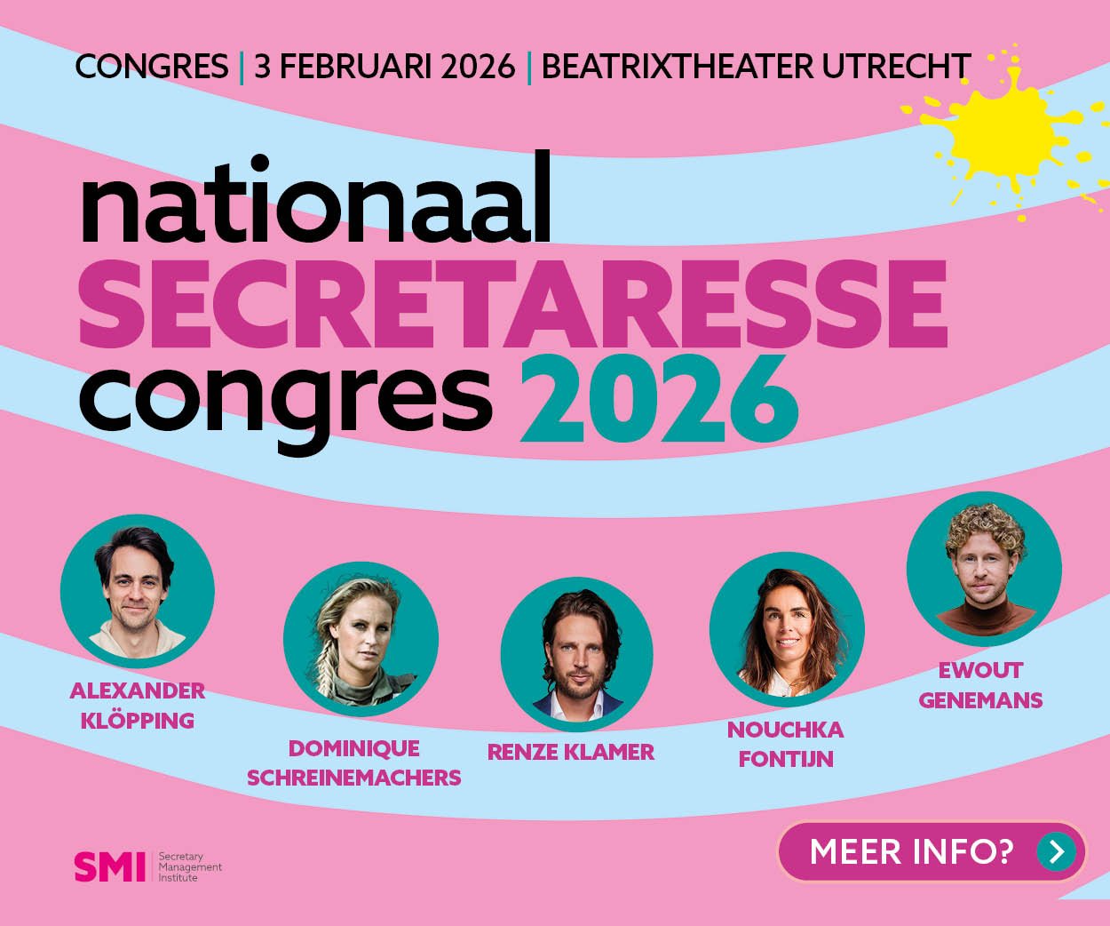 3 februari 2026 is het zover: het Nationaal Secretaresse Congres! Dit jaar ontdek je hoe je vanuit verschillende invalshoeken nieuwe kennis en inspiratie kunt toepassen om je werk en toekomst vorm te geven.